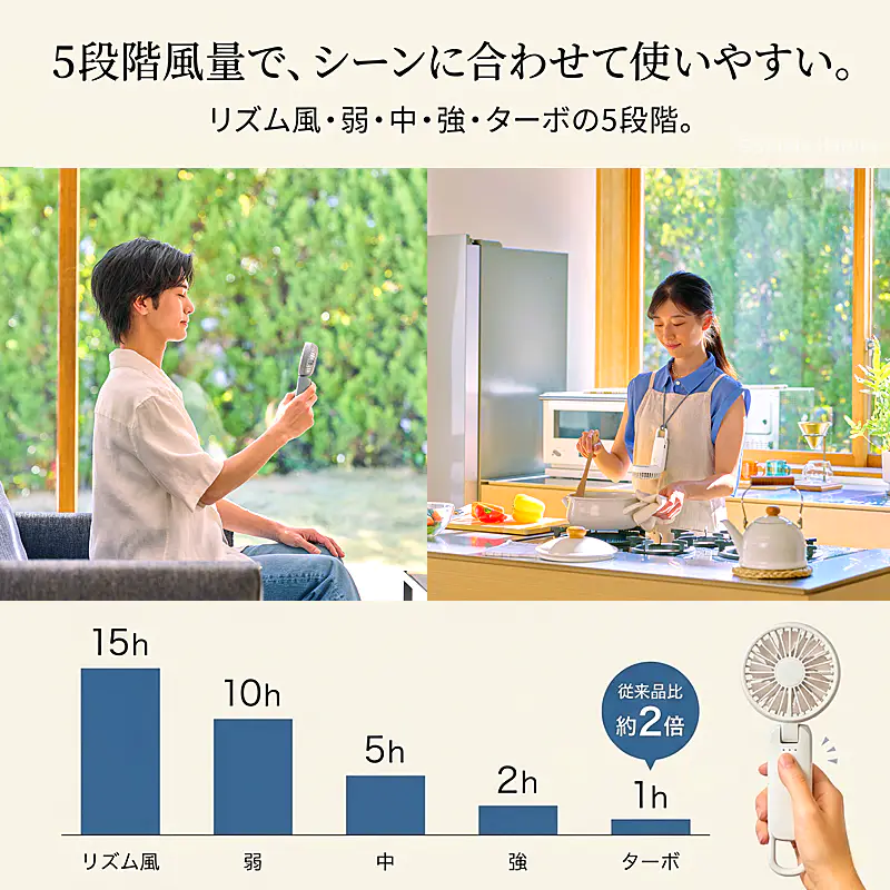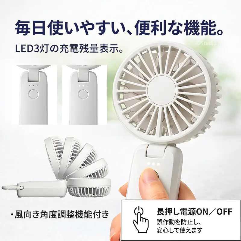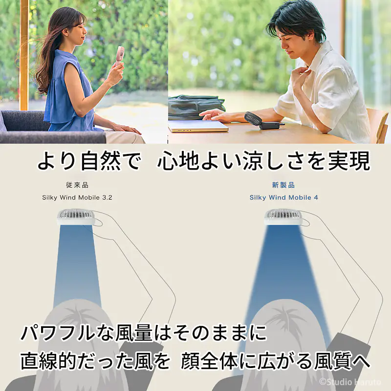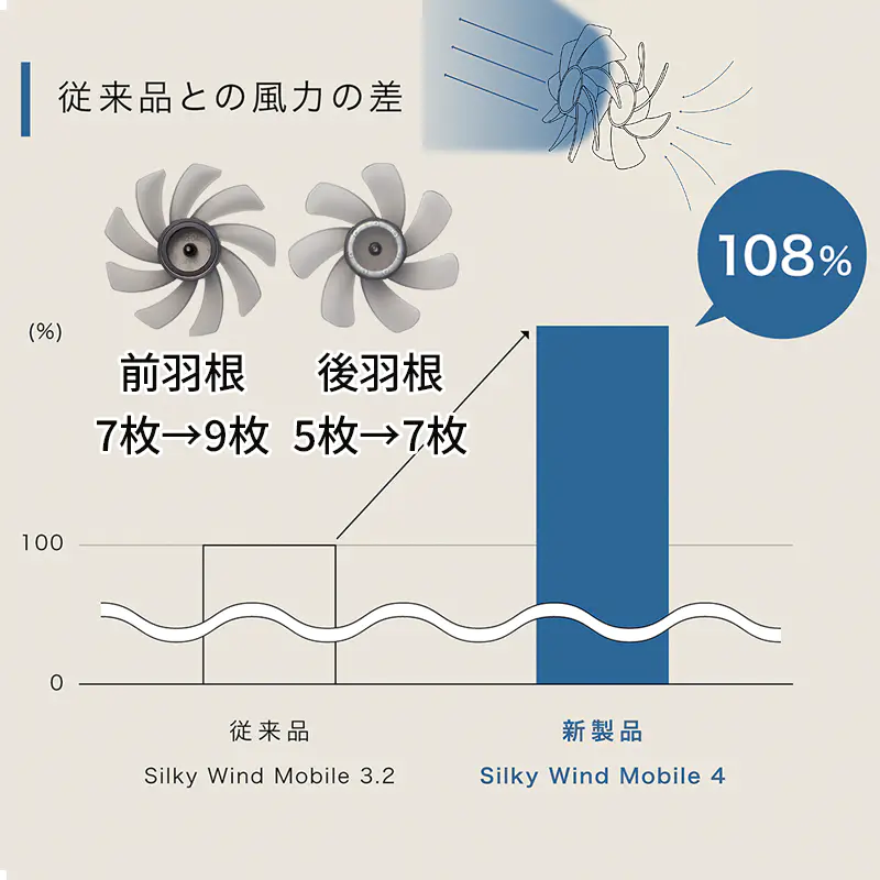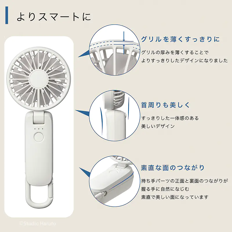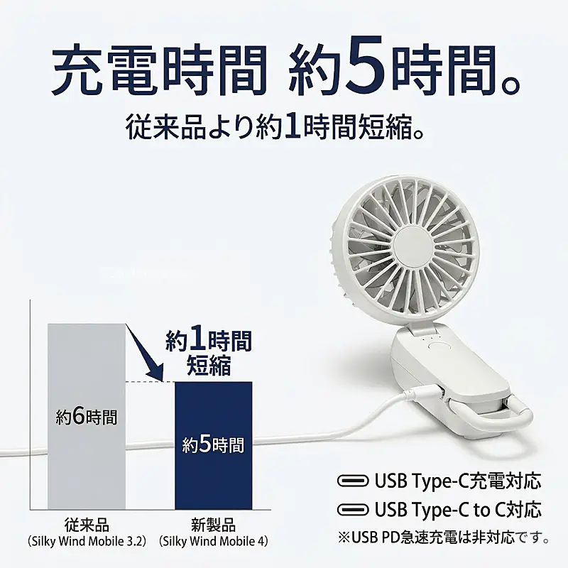 ![]() ![]() ■Silky Wind Mobile 4の真価 皆様、今年の夏の暑さ対策は万全でしょうか? 数ある携帯扇風機の中で、私たちスタッフが自信を持ってこの「Silky Wind Mobile 4」をおすすめするのには、確固たる理由があります。それは、時計メーカーとして精密なモノづくりを追求してきた「RHYTHM(リズム)」だからこそ実現できた、圧倒的な『風の質』と『計算し尽くされた機能美』です。 「2重反転ファン」が生み出す、想像を超える風 一般的なハンディファンとは異なり、この扇風機には前後に2つの羽根(前9枚/後7枚)が搭載されています。後ろの羽根で周りの空気をたっぷりと集め、前の羽根で筒状の強力な風にして前方に押し出す。この独自の仕組みにより、コンパクトなボディからは想像もつかないほどの大風量を実現しています。 さらに今回のモデルでは、ただ強いだけでなく「顔全体を包み込むような広い風」へと進化しました。真夏の屋外でも、まるで木陰を吹き抜ける涼風のような心地よさを体感していただけます。 くらしに「なじむ」洗練されたスマートデザイン どんなに機能が優れていても、持ち歩く扇風機はデザインも重要ですよね。本モデルは、グリルの厚みを極限まで薄くし、余分な凹凸を削ぎ落としました。本体を折りたたんだ際の段差も少なくなり、小さなバッグのポケットにもスッと収まります。 正面から裏面へと続く持ち手の「素直な面のつながり」は、手にした瞬間にしっくりと馴染む心地よさがあります。主張しすぎず、それでいて上質な存在感を放つ。まさに大人のためのスマートなハンディファンです。 ![]() 暑い日にうれしい、実用性の高さ 風量は5段階で切り替え可能。そよ風のようなリズム風から、しっかり涼しいターボまで、その日の暑さや場所に応じて選べます。ターボ運転は約1時間、リズム風なら約15時間の連続使用が可能。さらに、充電時間は約5時間へ短縮され、従来品より約1時間早く充電できます。外出前に備えやすく、日々の使い勝手までしっかり考えられているのがうれしいポイントです。 ![]() 3wayだから、暮らしの流れを止めない 朝の通勤では手持ちでさっと涼しく。移動中や屋外イベントではネックストラップでハンズフリーに。オフィスや自宅では卓上に置いてデスクファンとして。Silky Wind Mobile 4は、持つ・置く・掛けるの3wayで、使う場所やシーンに合わせて自然に寄り添います。ファン部の角度調整機能も備えているので、欲しいところへ風を送りやすく、近くでも離してでも快適に使いやすい設計です。 軽い、頼れる、持ち歩きやすい 本体は約160gの軽量設計。バッグに入れても負担になりにくく、カラビナ付きだから引っ掛けて持ち運ぶこともできます。取り出す、使う、しまう、その一連の動作まで軽やか。毎日使うものだからこそ、こうした“ちょっとした扱いやすさ”が、実は大きな満足感につながります。 ![]() ■7色から選べる、自分らしい1台 カラーはライトグレー、ミディアムグレー、ダークグレー、グレーベージュ、ピンク、ブルー、グリーンの7色展開。ベーシックにまとめたい方にも、やさしいニュアンスカラーを楽しみたい方にも選びやすいラインアップです。家族で色違いにしたり、服装や持ち物に合わせて選んだり、毎日持ち歩くアイテムだからこそ、好きな色を選べる楽しさも魅力です。 ライトグレー 清潔感があり、どんなファッションにも合わせやすい定番カラー 明るく軽やかな印象で、通勤・通学からオフィス使いまで幅広く選びやすい1色です。すっきりとした見た目で、迷ったらまず候補に入れたい万能カラーです。 ミディアムグレー 落ち着きとやさしさのバランスがちょうどいい上品カラー。 ライトすぎずダークすぎない中間色で、シンプル派にもニュアンスカラー派にも取り入れやすい印象です。日常になじみやすく、飽きずに長く使いやすい雰囲気があります。 ダークグレー 引き締まった印象で、スマートに持ちたい方におすすめ。 落ち着いた色味で、シックなバッグや小物とも相性がよく、機能的な印象をすっきり見せてくれます。男女問わず選びやすいスタイリッシュなカラーです。 グレーベージュ やわらかく上品なニュアンスが魅力の、今っぽいカラー ナチュラルな雰囲気があり、やさしい印象で持ちたい方にぴったりです。落ち着いているのに地味すぎず、服や日傘、小物とも合わせやすい色合いとして訴求しやすい1色です。 ピンク やわらかく華やかな印象で、持つだけで気分が明るくなるカラー かわいらしさがありながら、やさしいトーンなら大人の方にも取り入れやすい雰囲気を演出できます。毎日の持ち物に少し彩りを加えたい方におすすめです。 ブルー 見た目にも涼しげで、夏らしさを感じられる爽やかカラー。 すっきりとした印象で、暑い季節のアイテムとして相性の良い色味です。清涼感を重視したい方や、さっぱりした雰囲気を好む方におすすめしやすいカラーです。 グリーン 自然体で心地よい印