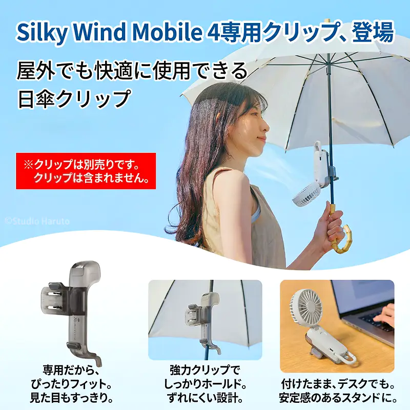 日傘クリップ Silky Wind Mobile 4 シリーズ専用 両手が空く 2026 ハンディファン傘用アタッチメント スモークグレー リズム 軽量 44g 熱中症対策 RHYTHM