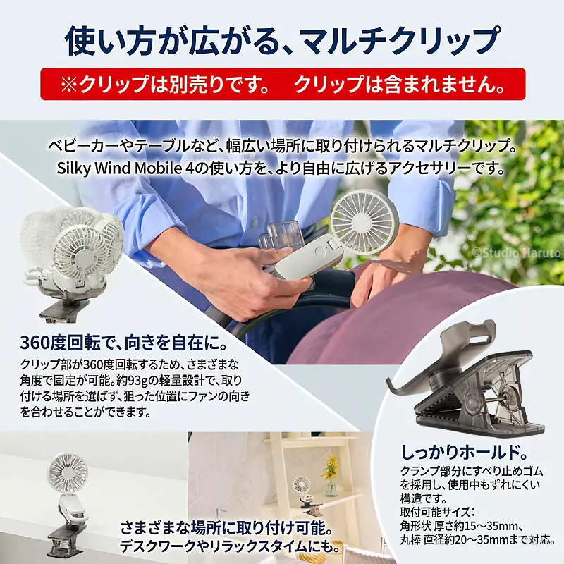 リズム Silky Wind Mobile 4 専用 マルチクリップ 360度回転 デスク ベビーカー ハンディファン アタッチメント ハンズフリー CYY003RH00 スモークグレー RHYTHM