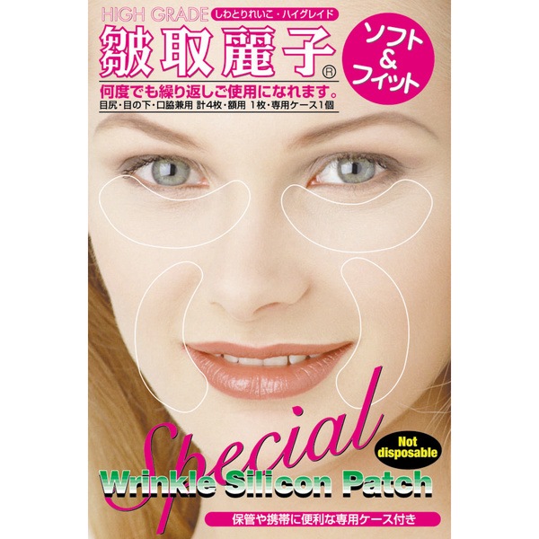 | 米国で手術後の傷跡を目立なくすることを目的に一般患者に用いられてきたシリコンシート。 皺取麗子(しわとりれいこ)は美容向けに、一般の方にも利用できるように 使いやすく改良された無害のシリコン素材の美容用具です。 |