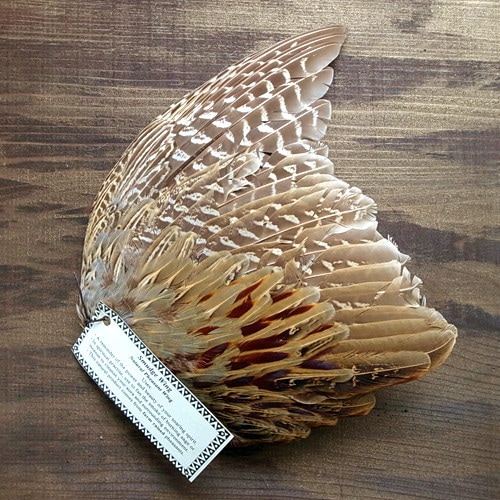 | ●サイズ:長径 23cm~25cm ●発売元:Medicine Field ◎内容:スマッジウイング(鳥の羽根)は、貴方の高い次元のスピリットの力強さや美しさを思い出させてくれるアイテムとして、スマッジングの際に多く用いられています。セージやインセンスを焚くときにこの羽根の力を借りて煙を送ります。自分自身のエネルギーや私達を取り巻く生活環境、空間などの浄化にお使いください。 ※スマッジウイングはUSAで食用に飼育されたキジの羽根です。 |