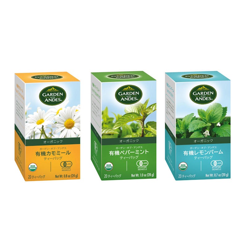 | ●ペパーミント Peppermint アンデスの太陽の光を一杯に浴びた清々しい香りのハーブティです。リフレッシュしたいときやこってりした料理の後にどうぞ。 |