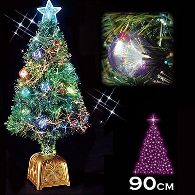 LEDグリーンファイバークリスマスツリー90cm ゴールドデコレーション付 WG-3683GR