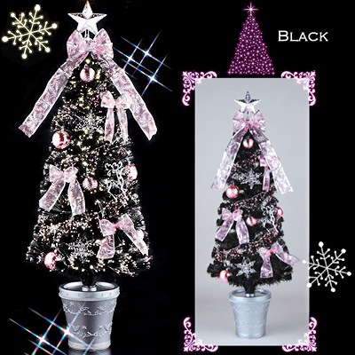 LEDブラックファイバークリスマスツリー90cm ピンクデコレーション付 WG-3683BK