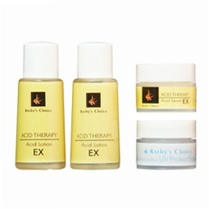 | ●商品名:Kathy's Choice アシィドプログラムEX 5days ●発売元:株式会社キャシーズチョイス(旧イースト・バウンド) ●セット内容:アシィドローションEX(15ml×2)、アシィドセラムEX(5g)、UVプロテクトベース30(5g) ◎内容:通常より強めのEXシリーズ。『使ってみたいけど刺激が心配・・・』と言う方にもお試し頂ける5日間分のトライアルキットです。酸コスメ上級者の方や男性におすすめです。 ※酸コスメが初めての方はまずは通常タイプをご利用下さい。 |