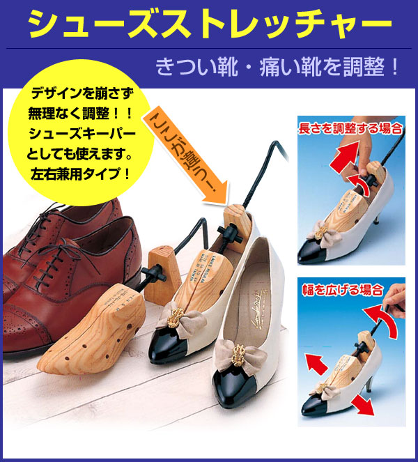 | シューズストレッチャー お気に入りの靴がぴったりサイズでよみがえる。 きつい靴・痛い靴を調整!足が痛くならない靴に。 |